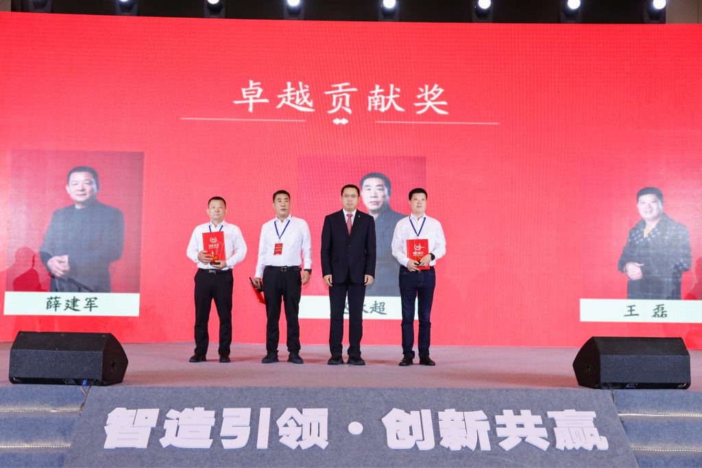 集团董事长韩红安为”卓越贡献奖“获得者颁奖 集团党委书记、总裁俞有飞为”战略产品推广奖“获得者颁奖 集团副董事长李相杰为”杰出贡献奖“获得者颁奖 jinnian金年会股份总经理龙宏欣为”特殊贡献奖“获得者颁奖 集团常务副总裁苗红为”特殊贡献奖“获得者颁奖
