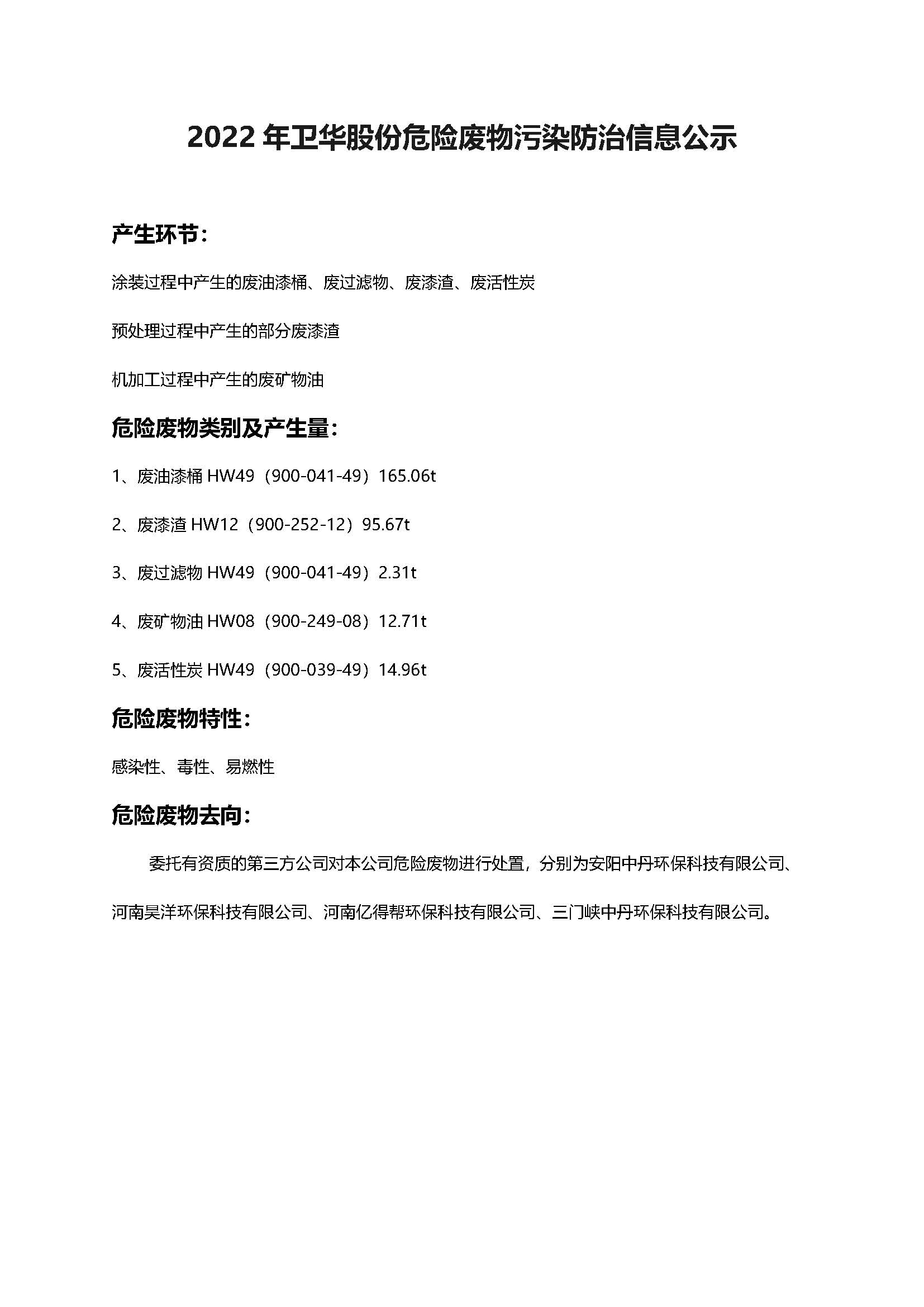 2022年jinnian金年会股份危险废物污染防治信息公示